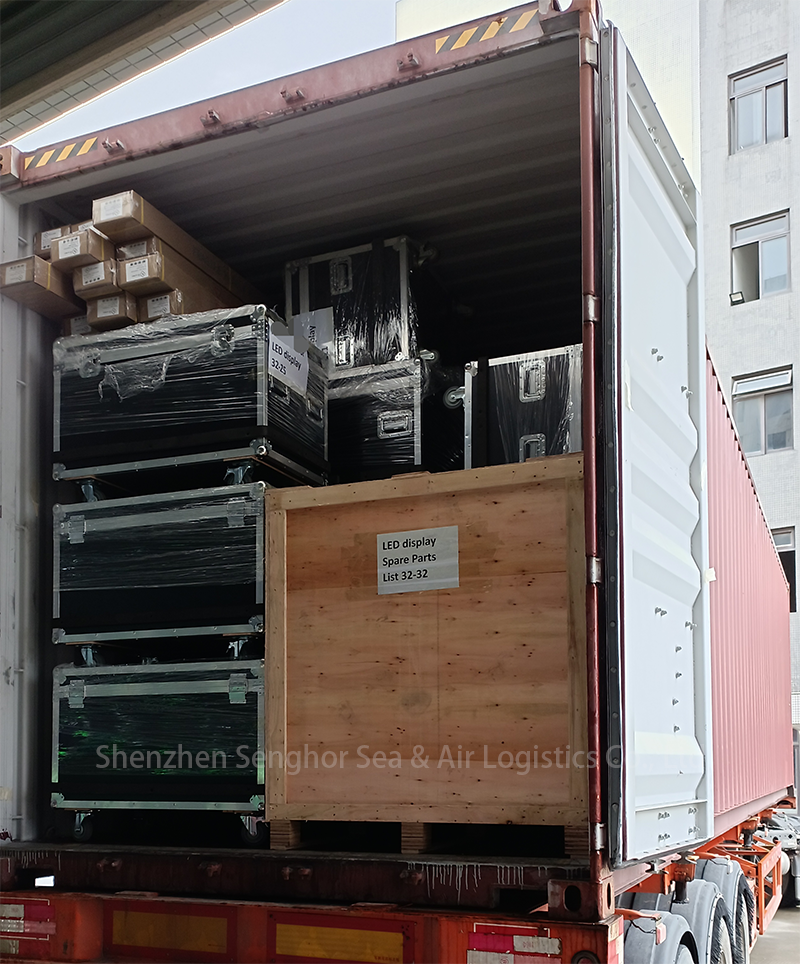 Container ocean freight shipping for LED display screens from China to UAE by Senghor Logistics. Direct factory supplier ensuring reliable, cost-effective delivery.