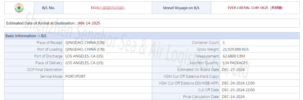 Among our services from China to USA, one of the most popular shipping routes is from the major Chinese port city of Qingdao to various destinations in the United States, including Los Angeles. If you are considering shipping goods from China to the United States, especially from Qingdao, you may have questions about the process, costs, and timelines. We will explore the ins and outs of sea shipping, with a specific focus on shipping from Qingdao to the United States, and how Senghor Logistics can help you during this process.Sea shipping is a method of shipping goods via ocean-going vessels. It is one of the most cost-effective ways to transport large quantities of goods internationally. Sea freight is often the first choice for businesses looking to import products from China due to its ability to handle large volumes and relatively low costs compared to air freight.FOB stands for "Free on Board." It is a shipping term used in international trade that indicates when responsibility and liability for the goods passes from the seller to the buyer. The term is often followed by a location, such as "FOB Qingdao," which specifies where the seller's responsibility ends and the buyer's responsibility begins.In an FOB agreement:FOB Origin: The buyer assumes responsibility for the goods once they leave the seller's premises. The buyer pays the freight and bears the risks during transportation. FOB Destination: The seller is responsible for the goods until they arrive at the buyer's location. The seller pays the freight and bears the risks during transportation.Qingdao port is one of China's busiest ports, known for its efficient operations and strategic location on the eastern seaboard. There are many heavy industrial bases in northern China. Senghor Logistics often helps customers transport some large heavy machinery and equipment from Qingdao port to the United States, Canada, Australia and other countries. It is a gateway for many international shipments and is ideal for businesses looking to ship products to the United States. The port's advanced infrastructure and connections to major shipping lines ensure your cargo is shipped quickly and efficiently.The estimated transit time for shipping from Qingdao to Los Angeles is approximately 18-25 days. This time frame may vary depending on factors such as shipping routes, weather conditions, and customs clearance processes. Senghor Logistics will do our utmost to ensure that your shipment is handled smoothly and arrives at its destination on time.You can use our recent shipping tracking records as a reference. The following picture shows the transportation from Qingdao, China to Los Angeles, California, USA handled by Senghor Logistics, which clearly shows the shipping situation of the freight ships starting at the end of December. Similarly, if the ship carrying your container starts sailing, you can also check it with the corresponding container number. Of course, our customer service team will also update you with the latest status, so you don't need to spend more time on this matter.Senghor Logistics specializes in providing comprehensive logistics solutions to meet your specific needs. Our services include:1. FCL (Full Container Load) and LCL (Less Than Container Load) Shipping: Whether your cargo is enough to fill an entire container or just a few pallets, we can meet your shipping requirements.2. Door to Door Service: We can arrange to pick up your shipment from your China location and deliver it directly to your door in the United States.3. Port to Port Service: If you wish to handle the inland transportation yourself, we can simply transport your goods from Qingdao Port to Los Angeles Port.4. Door to Port Service: We can arrange to load the container from your supplier factory to your destination port as you require.5. Port to Door Service: If you want us to arrange shipping from the port of departure to your warehouse or consignee’s address, in addition to the cargo information, you can provide us with the specific address and zip code.You may want to know: What is the difference between FCL and LCL in international shipping?What are the terms of door-to-door shipping?One of the main advantages of working with Senghor Logistics is that we are able to provide large-volume rates negotiated directly with shipping companies in the Chinese market (such as COSCO, HPL, ONE, HMM, CMA CGM, etc.). These rates are not usually applicable to US or international freight forwarders, so we can directly save you a lot of costs.In addition, our team has on-the-ground experience in China and the United States, including pickup, warehousing, transportation, customs clearance, duties and taxes, and delivery, and can provide you with logistics expertise and local knowledge to simplify your shipping process.You may want to know: Common expenses for door to door delivery in USAWhen planning your cargo shipment from Qingdao to the United States, please consider the following:1. Customs Regulations: Make sure your goods comply with US customs regulations to avoid delays caused by incorrect documents and information. Senghor Logistics can assist you in preparing the necessary documents and customs clearance procedures.2. Insurance: Consider purchasing cargo insurance to protect your investment. This protects your goods from potential loss or damage during shipping process.3. Shipping Schedule: Plan your shipping schedule in advance to account for possible delays. Our team can help you create a schedule that meets your business needs.4. Cost Management: Understand all costs involved in the shipping process, including freight rates, tariffs, and any additional fees. Senghor Logistics offers transparent pricing to help you budget effectively.Q: How much is sea freight from China to USA?A: This depends on different shipping companies, and the prices may not be the same. On average, the price for a 40HQ container from China to the United States is between USD 4,500 