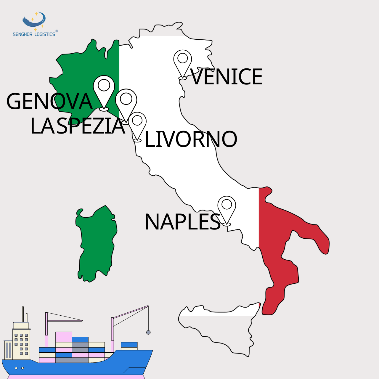 In order to provide a convenient transportation experience, we operate in multiple ports in China. This flexibility allows you to choose the most convenient departure point, reducing transit time and increasing overall efficiency. Whether your supplier is in Shanghai, Shenzhen or any other city in China (such as Guangzhou, Ningbo, Xiamen, Tianjin, Qingdao, Dalian, Hong Kong, Taiwan, etc. or even the inland ports like Nanjing, Wuhan, etc. that we can use barge to ship the products to Shanghai port.), we can seamlessly deliver your desired home appliances to Italy.From China to Italy, we can transport to the following ports: Genova, La Spezia, Livorno, Naples, Vado Ligure, Venice,etc. At the same time, if you need door-to-door service, we can also meet it. Please provide the specific address so that we can check the delivery cost for you.