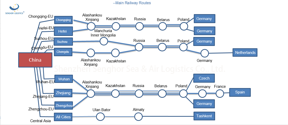 So we suggest some European customers to consider other modes of transportation, and rail freight is one of them. Senghor Logistics is one of the earliest cross-border transportation units of China-Europe Railway Express, providing high-quality rail cross-border logistics services for international trade between China and Germany and other European countries.
