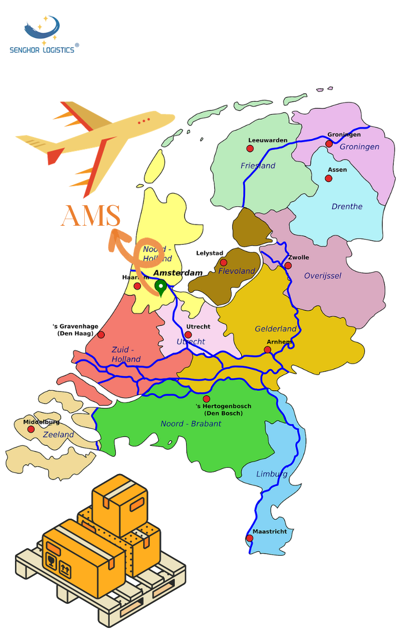 You only need to provide us with the goods information and supplier contact information, and we will take care of the rest. We coordinate pickup, storage, make sure your cargo departs and arrives as per plan. Our team of experts will require suppliers to pack properly and monitor the full logistics process, and buy insurance for your shipments if necessary, so that your goods will be packed and loaded in the most efficient manner, minimizing wasted space and reducing shipping costs.If you plan to ship goods from China to Amsterdam, Netherlands, our freight forwarding services can be your trustworthy partner. When you choose Senghor Logistics, you can rest assured that your goods will arrive in Amsterdam efficiently, allowing you to focus on your business and customers without worrying about transportation issues. Contact us today to experience a smooth and seamless import process!Q1. What documents are required to import goods from China to Amsterdam? A: Commonly used documents include commercial invoices, packing lists, bills of lading, air waybills, and any necessary import licenses or permits. Q2. What air freight services do you offer for shipping from China to Amsterdam, Netherlands? A: We provide end-to-end international air freight forwarding services from major airports in China (Shanghai, Shenzhen, Guangzhou, Beijing, Hong Kong, etc.) to Amsterdam Schiphol Airport (AMS). Specific services include: door-to-door pickup from suppliers in various Chinese cities; customs declaration and inspection within China; booking space with major airlines (such as Air China and China Southern Airlines) for direct or connecting flights to Amsterdam Schiphol Airport (AMS); international air freight; customs clearance in the Netherlands (including preparing customs documents, paying duties and taxes, and coordinating with local customs). Final delivery is to the designated address in Amsterdam or other Dutch cities, and optional door-to-door delivery across the EU. In addition, we also provide value-added services such as cargo insurance, cargo tracking, and handling of special cargo (dangerous goods, oversized items).Q3. How long does air freight from China to Amsterdam typically take? A: Standard air freight takes approximately 5 to 8 days from pickup in China to delivery in Amsterdam, including customs processing. Express air freight options can reduce this to 3 to 5 days, depending on flight schedules and customs clearance.Q4. How are air freight shipping costs calculated? A: Costs are based on either actual weight or volumetric weight (whichever is higher), along with fuel surcharges, security fees, customs clearance fees, and any additional services (e.g., insurance, special handling). Senghor Logistics can provide transparent quotes for your reference.Q5. What types of cargo can be shipped by air from China to the Netherlands? A: We ship all types of air cargo, including electronics, e-commerce goods, machinery parts, clothing and textiles, medical supplies, automotive parts, and high-value or time-sensitive goods. Special cargo, such as dangerous goods (DG) and temperature-controlled goods, can also be arranged for transport upon provision of the appropriate documentation.Contact us